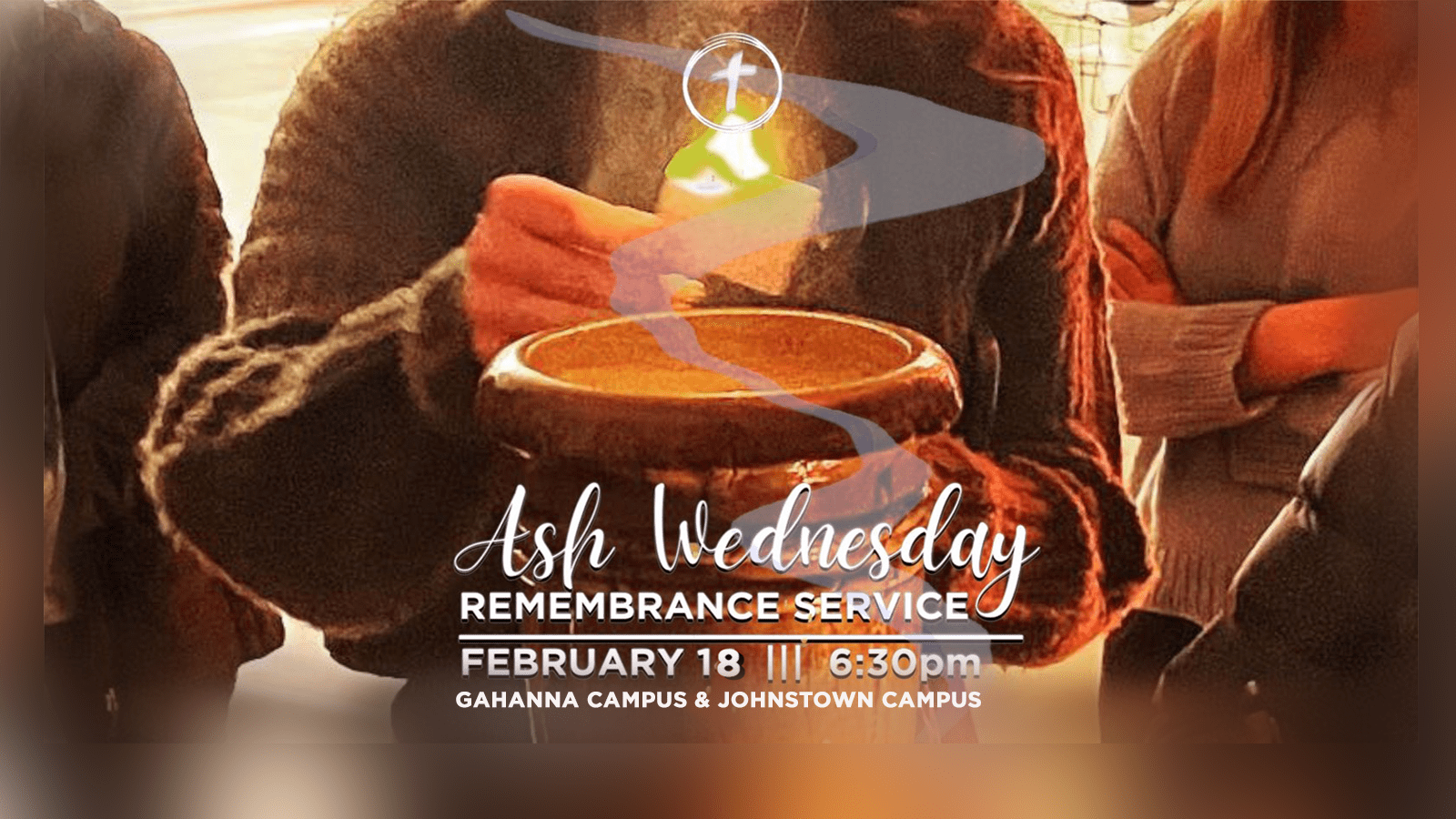 02/18 ASH WEDNESDAY REMEMBRANCE SERVICE 6:30 PMJoin us at the Gahanna Campus or the Johnstown Campus for an Ash Wednesday service as we pause, pray, and refocus