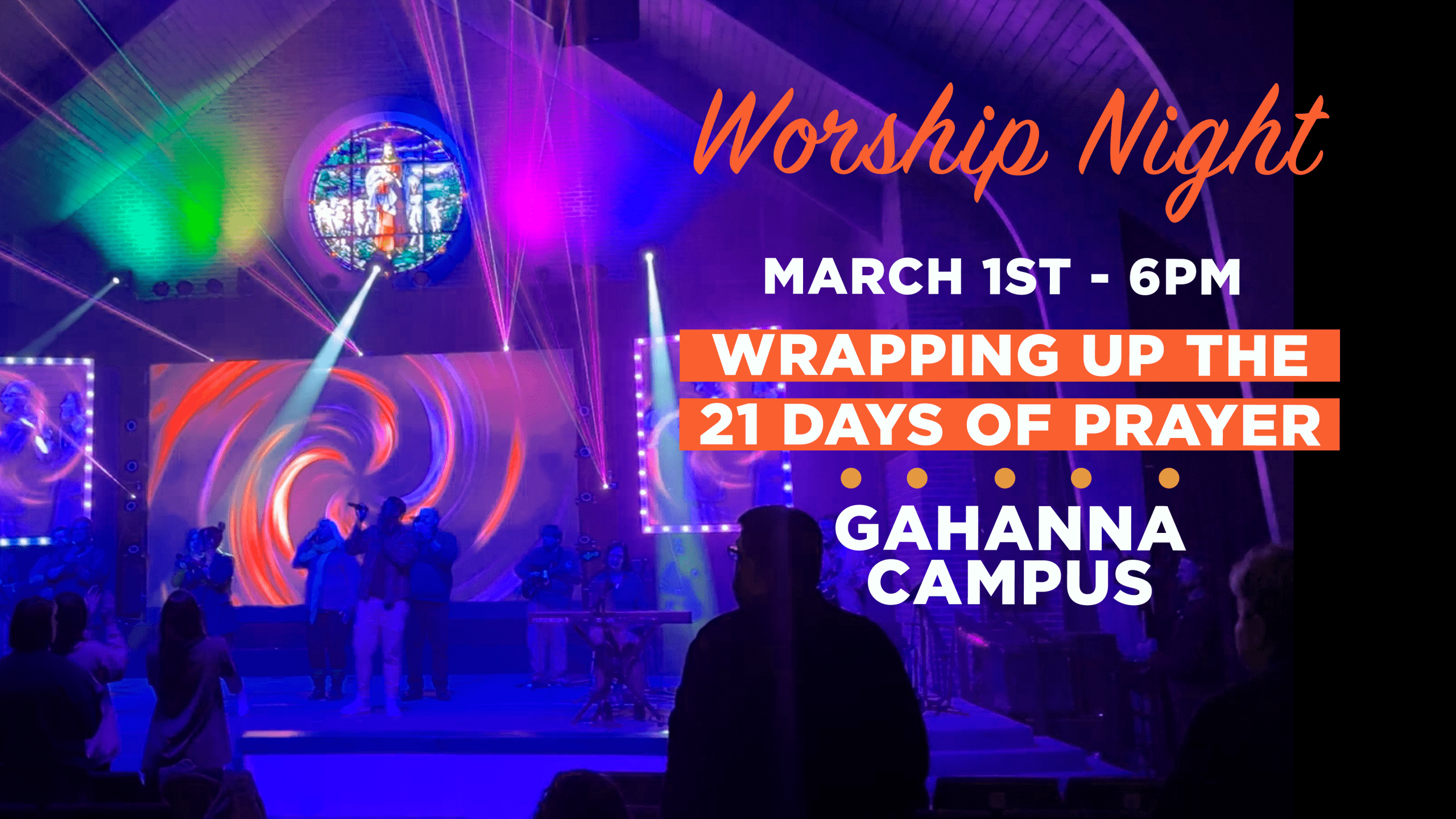 03/01 WORSHIP NIGHT GAHANNA 6:00 PMPlan to join us at the Gahanna Campus as we come together for a special Worship Night, wrapping up our 21 Days of